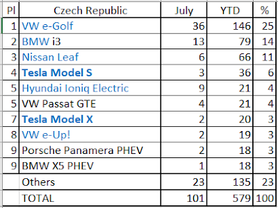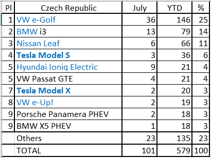 The VW e-Golf is in Third Place, but behind it, there are several models closing in, with the #4 Jaguar i-Pace (12 registrations in May, a new record) just 6 units behind, the forever-young #5 Mitsubishi Outlander PHEV (11 registrations, new PB) separated by only 10 units, and the Hyundai Ioniq PHEV benefiting from the recent restyling to jump out of no where to #6, thanks to a record 16 deliveries a new record for a Hyundai nameplate in this market.