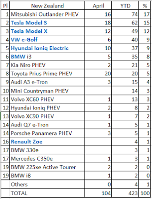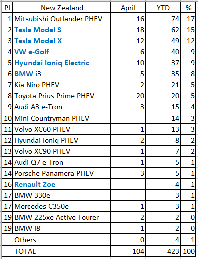 New Zealand - Mitsubishi Outlander PHEV turf, PEV share above 1% (1.4%);