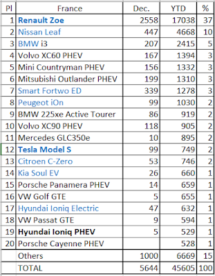 But, while the 2019 year sure looks more interesting to see than this past year, i believe the true disruption will only come in 2020, when Peugeot plays its cards, starting to deliver its 208 EV, finally forcing the Renault Zoe to play game and make an effort to keep #1, while the 3008 PHEV will go after the Nissan Leaf and Tesla Model 3 for Third position, thus making the PEV podium a lot more similar to the mainstream one.